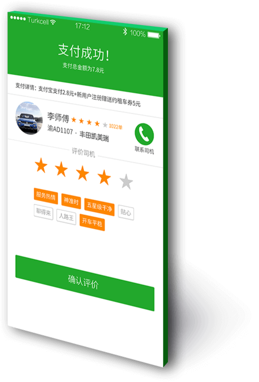 • 個性小費添加、拼車、對司機捎話  行程分享、緊急求助  多種支付