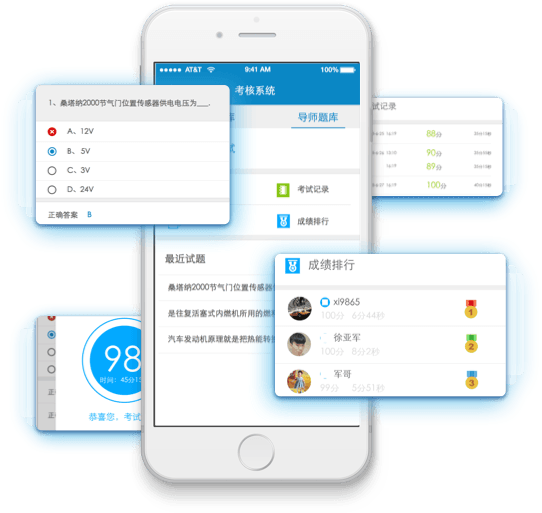 • 汽修課堂不僅可以自手機端進行課程學習,其APP還支持在線考試,在家里、坐地鐵,甚至是在餐廳等,都可以隨時拿起手機“考試”。