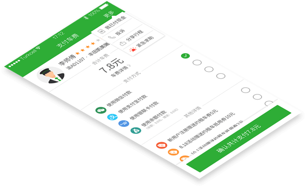 • 個性小費添加、拼車、對司機捎話  行程分享、緊急求助  多種支付